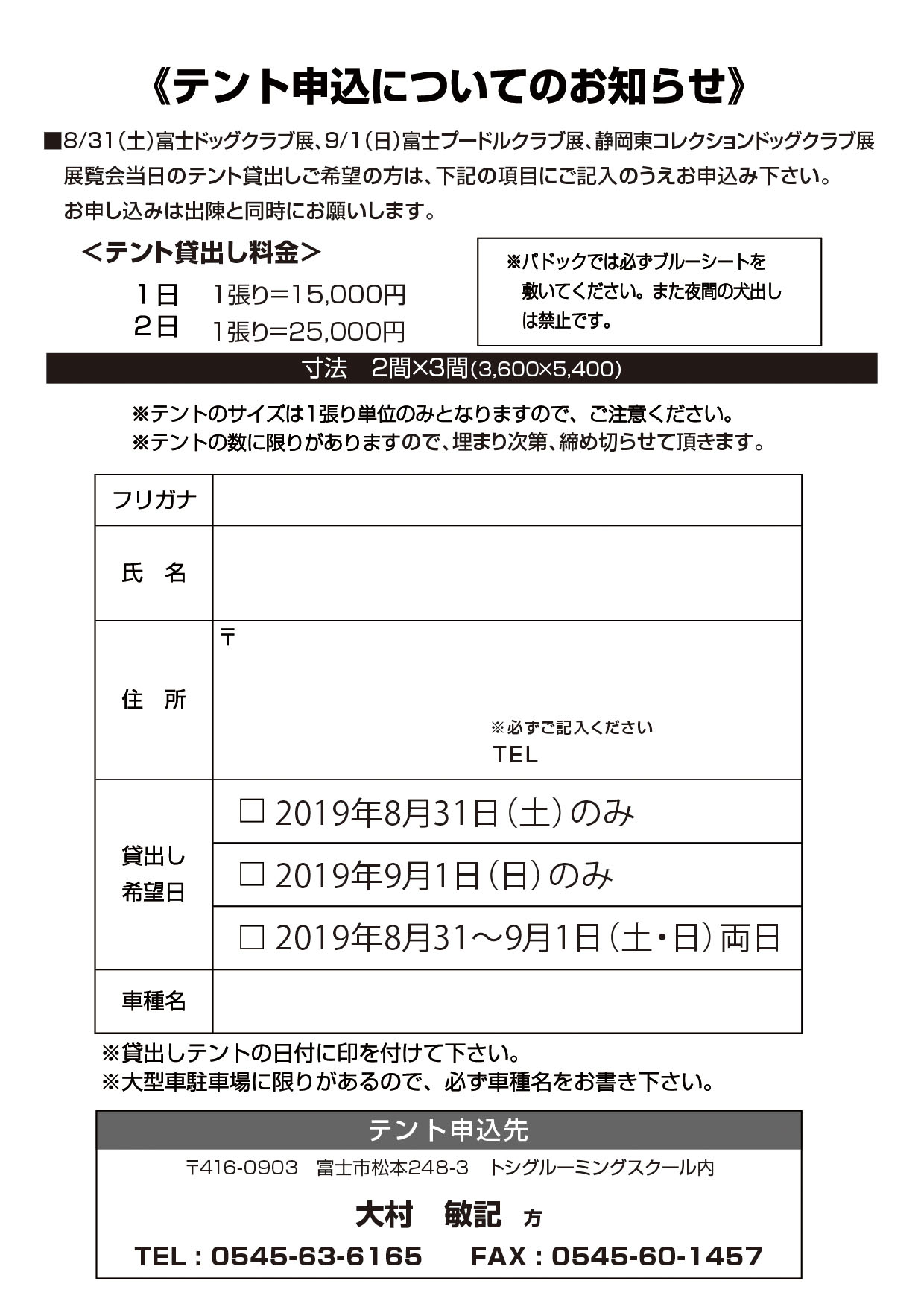 テントの申し込みは数にかぎりがありますので、お早めにFAXお願いいたします。